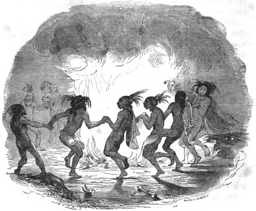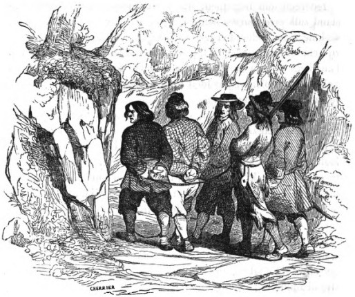 Nadat deze hen overgezet hadden, zag ik, dat zij de boot een goed eind weegs in de kreek, en dus als het ware in een haven gelegd hadden; zij namen dan ook een van de drie man er uit met hen mede, en lieten er slechts twee in de boot, die zij met een touw aan den stam van een boom hadden vastgemaakt.