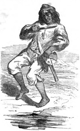 Het is onmogelijk de verbazing van die arme schepsels te beschrijven, bij het zien en hooren van mijn schot. Velen schenen half dood van vrees en vielen van schrik neder. Doch toen zij het dier dood zagen, en ik hun wees, dat zij naar het water zouden komen, vatten zij moed en begonnen het dier op te zoeken. Aan het bloed, dat op het water opkwam, bespeurde ik waar hij lag, en met een touw, dat ik om hem sloeg en de Negers liet inhalen, sleepten zij het op strand. Het was een bijzonder gevlekte en schoone luipaard, en de Negers hieven van verbazing, dat ik hem gedood had, de handen omhoog.