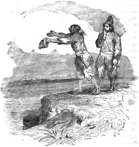 Wij vulden dus onze kruiken, aten den haas, dien wij gedood hadden, en besloten te vertrekken, zonder dat wij eenig spoor van menschen voetstappen in die landstreek gezien hadden.