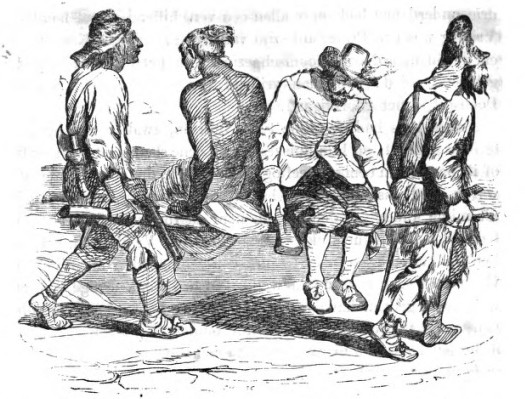 Toen wij echter hierover beraadslaagden, kwamen er vier Fransche heeren aan, die aan de Fransche zijde, even als wij aan de Spaansche, gebleven waren, tot zij een gids hadden gevonden, die het land bij het hoofd van Languedoc doortrekkende, hen langs wegen had gevoerd, waar zij slechts weinig sneeuw hadden aangetroffen, en deze was nog zoo hard bevroren, zeiden zij, dat zij hen en hunne paarden had kunnen dragen. Wij lieten dezen gids roepen, die zeide te willen aannemen ons langs denzelfden weg te brengen, zonder eenig gevaar van de sneeuw, mits wij genoeg gewapend waren, om ons voor de wilde dieren te beschermen; want als er zoo veel sneeuw viel, zeide hij, kwamen de wolven dikwijls van het gebergte naar beneden, razende van honger, omdat de met sneeuw bedekte grond hun geen voedsel aanbood. Wij zeiden, dat wij voor zulke beesten genoeg gewapend waren, als hij ons beveiligen kon voor eene soort van wolven op twee beenen, waarvan naar men ons gezegd had, wij vooral aan de Fransche zijde van het gebergte het meeste gevaar liepen. Hij verzekerde ons, dat op den weg, dien hij wilde nemen, wij daarvan geen gevaar zouden loopen. Dus besloten wij hem te volgen, even als twaalf andere heeren met hunne knechten, Spanjaarden en Franschen, die gelijk ik zeide, den overtogt beproefd hadden, maar genoodzaakt waren geweest terug te keeren.