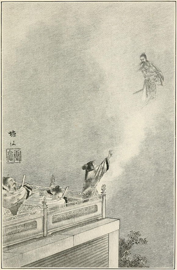 Saisho and his wife were devoted to this very temple, and often used to visit it to offer thanksgiving for their mutual happiness, and to pray for their children. Now this day, as was their wont, they had come with their three little sons and some of their retainers. The little boys were beautifully dressed in silk and crape, and the whole party had the appearance of a nobleman and his retinue.