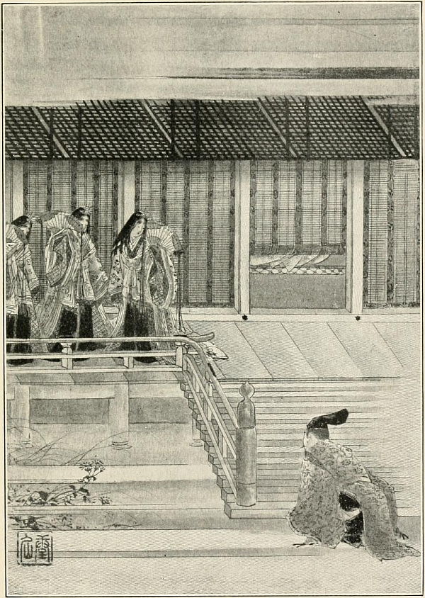 So the next time that Lord Nijo went up to the Palace he ordered Taro to accompany him. So Taro at last had the highest honour that could befall a mortal, for he was commanded to enter the august presence of the Son of Heaven.