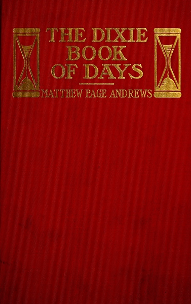 Project Gutenberg's The Dixie Book of Days, by Matthew Page Andrews This eBook is for the use of anyone anywhere at no cost and with almost no restrictions whatsoever. You may copy it, give it away or re-use it under the terms of the Project Gutenberg License included with this eBook or online at www.gutenberg.org Title: The Dixie Book of Days Author: Matthew Page Andrews Release Date: November 24, 2012 [EBook #41474] Language: English Character set encoding: UTF-8 *** START OF THIS PROJECT GUTENBERG EBOOK THE DIXIE BOOK OF DAYS *** Produced by The Online Distributed Proofreading Team at http://www.pgdp.net (This file was produced from images generously made available by The Internet Archive.)