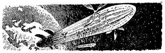 Unterhalb der Vorratsräume liefen die Leitungen der elektrischen Apparate für Heizung und Beleuchtung des Gondelinnern und diejenigen für die Erneuerung der Luft. Die Fortschritte der technischen Wissenschaften hatten es möglich gemacht, ganz gewaltige Mengen elektrischer Kraft auf einem verhältnismäßig kleinen Raume festzulegen. Auf diese Weise nur war es dem Weltensegler möglich, ohne nennenswerte Mehrbelastung diejenigen Energiemengen an elektrischer Kraft mit sich zu führen, die in ihrer umgesetzten Form als Licht und Wärme nicht nur die Existenz der Gondelbewohner ermöglichen, sondern auch zur Vorwärtsbewegung und Lenkung des Luftschiffes selbst dienen sollten. Für letztere Zwecke waren am Ballonkörper selbst seitwärts, rechts und links, Luftschrauben angebracht, die durch die elektrische Kraft von der Gondel aus in Tätigkeit gesetzt werden konnten. Zur ebenfalls elektrisch betriebenen Steuerung dienten mit dem imprägnierten Weckerleschen Stoffe bespannte, wagrecht wie senkrecht einstellbare große, mit Suevitröhren eingefaßte Flächen. Dadurch war eine Steuerung nach zwei Richtungen hin möglich, horizontal sowohl wie auch vertikal.