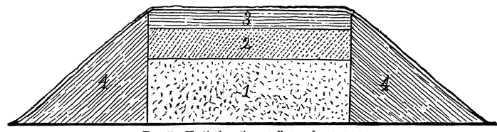 The one numbered 16, of the Courtois group, is about 20 feet in diameter, and at present scarcely more than 1 foot high, the ground having been in cultivation for several years and the mound considerably lowered by the plow. A vertical section is given in Fig. 2, a a, indicating the natural surface of the ground, b the part of the mound removed, and c the original circular excavation in the natural soil to the depth of 2 feet.