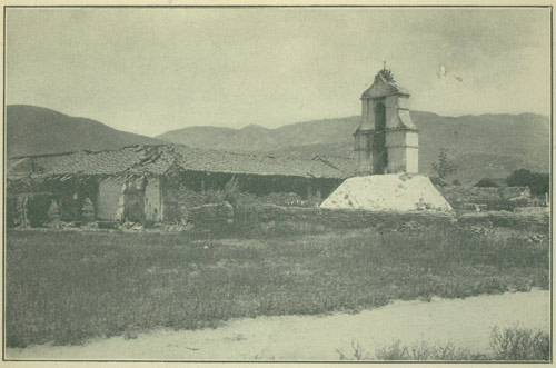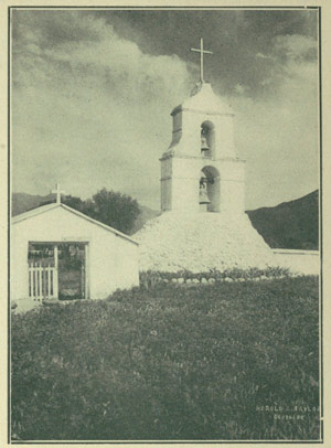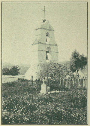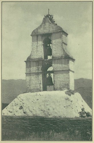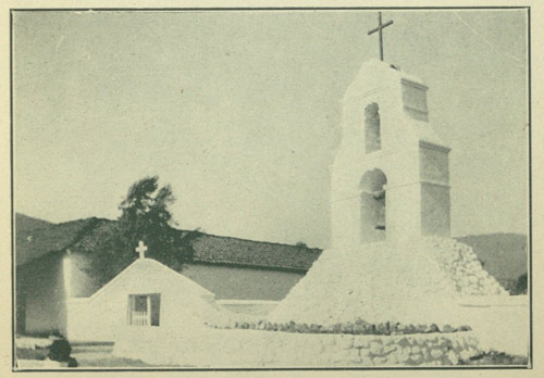 The little mission chapel, or asistencia, of San Antonio de Padua de Pala, has been an increasing object of interest ever since the Palatingua, or Warner's Ranch, Indians, came and settled here, when they were removed from their time-immemorial home, by order of the Supreme Court of California, affirmed by the Supreme Court of the United States. A century ago the beautiful and picturesque Pala Valley was inhabited by Indians. To give them the privileges of the Catholic Church and of the arts and crafts of civilization, the padres of San Luis Rey Mission, twenty miles to the west, established this asistencia, and caused the little chapel to be built. The quaint and individualistic bell-tower always was an object of interest to Californians and tourists alike, and thousands visited it. But additional interest was aroused and keenly directed towards Pala, when it was known that the severe storm of January, 1916, which caused considerable damage throughout the whole state—had undermined the Pala Campanile and it had 6 tumbled over, breaking into fragments, but, fortunately, doing no injury to the bells.