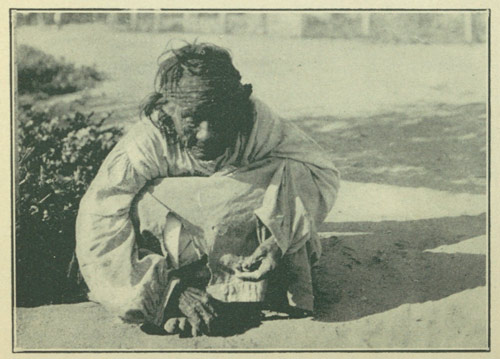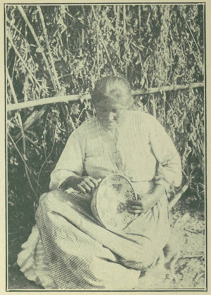 Is it surprising that the Indian often refuses to show, even when she knows she can make a sale, the latest product of her skill? The work is the joy of her heart; she has met the true test of the artist—she loves her work and, therefore, joys in it—how can she sell it? So when you ask her if she has a basket to sell she shakes her head, and when, days or weeks later, pressed by a real or fancied necessity, she brings it out and offers it for sale, you inwardly comment—perhaps openly—upon the untruthfulness of the Indian, when, in reality, she meant to the full her negative as to whether she had a basket to sell.