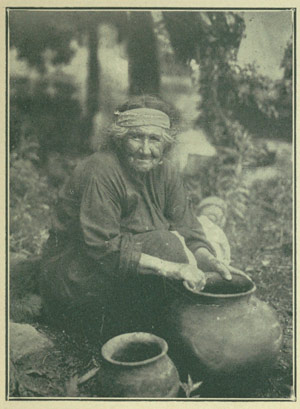 In the preceding chapter I have presented, in a broad and casual manner, the work of the Pala basket-makers. They are not confined, however, to this as their only artistic industry. They engage in other work that is both beautiful and useful. For centuries they have been pottery makers, though, as far as I can learn, they have never learned to decorate their ware with the artistic, quaint, and symbolic designs used by the Zunis, Acomese, Hopis and other Pueblo Indians of Arizona and New Mexico, or that might have been suggested by the designs on their own basketry.