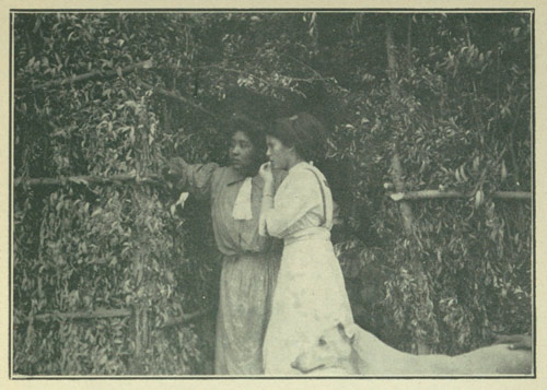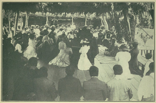 The women spend much time in their gardens and in basket- and lace-making. Their houses, gates, and fences are covered with a wealth of roses and other flowers and vines and their little gardens are laid out and cultivated with great skill. The men have a club-house, in which is a billiard-table, where they play pool and other games. There is also a piano, and several of the Indians are able to play creditably at their community dances.