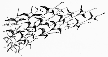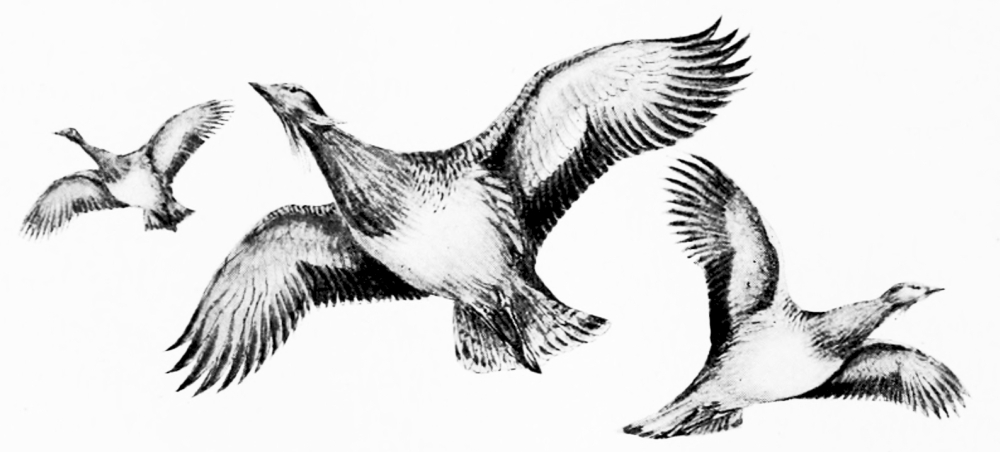 The portrayal of wildfowl presents a peculiar difficulty. This group differs in two essential characters from the rest of the bird-world. Though clad in feathers, yet those feathers are not “feathery.” Rather may they be described as a steely water-tight encasement, as distinct from the covering, say of game-birds as mackintosh differs from satin. Each plume possesses a compactness of web and firmness of texture that combine to produce a rigidity, and this, it so happens, both in form and colour. For in this group the colours, too, or patterns of colour, are clean-cut, the contrasts strong and sharply defined. The plumage of wild-fowl, in short, is characterised by lack of subdued tints and half-tones. That is its beauty and its glory; but the fact presents a stumbling-block to treatment, especially in colour.