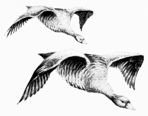 No wild bird (and wildfowl least of all) can be portrayed from captive specimens—still less from bedraggled corpses selected in Leadenhall market. In the latter every essential feature has disappeared. The ruffled remains resemble the beauty of their originals only as a dish-clout may recall some previous existence as a damask serviette. Living captives at least give form; but that is all. The loss of freedom, with all its contingent perils, involves the loss of character, the pride of life, and of independence. Once remove the first essential element—the sense of instant danger, with all that the stress and exigencies of wild-life import—and with these there vanish vigilance, carriage, sprightliness, dignity, sometimes even self-respect.