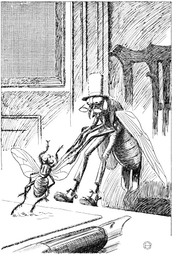 “Madam,” I raised a hand in protest, “let these over-crowded shelves be my answer,” my mind the while dipping again into the past where Mammy Phyllis seemed to whisper: “Bett’r look out, dat’s Cap’n Yall’r Jackit’s ole lady youse foolin’ wid.” Thus, while my visitor rehearsed the merits of “The American People in Literature and Art,” and differentiated between book agents and traveling educators, I listened to Mammy telling about Cap’n Hornet and Cap’n Yall’r Jackit and Mist’r Grab-All Spider, until finally Mammy and I sat together out under the old cherry tree and watched their famous battle.