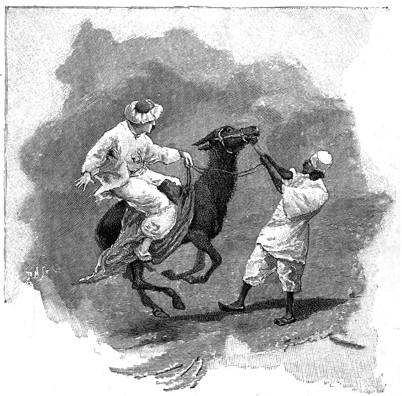 Hardly had he mounted his ass, when the animal turned towards Cabul, instead of proceeding on the way to Cashmere. In vain his rider tugged at the bridle, jerked at the bit, squeezed his ribs with his knees, drove the spurs into his flanks, gave him his head,[Pg 108] pulled him up, whipped him right and left. The obstinate beast still made direct for Cabul.