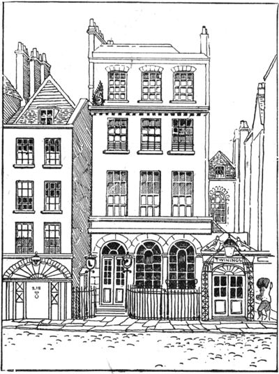 In 1855 it was discovered that some of the partners had been using their customers' money for their own pleasures or necessities. The guilty persons all went to prison; one of the few instances in which, as in the case of Fauntleroy, who was hanged for forgery, English bankers have been convicted of breach of trust. Adjoining this house is that of Messrs. Twining, who opened, in 1710, the first tea-shop in London. They still deal in tea, though fine ladies no longer go to the Eastern[Pg 7] Strand in their carriages to drink it, out of curiosity, at a shilling a cup.