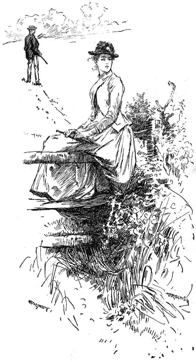 He looked about for a seat. One lay most handy. By the side of the line the Government engineers had been at work that day, repairing the telegraph system. They had taken down half a dozen mouldering old posts, and set up new ones in their place—tall, clean, and shiny. One of the old posts still lay at full length on the ground by the gate, just as the men had left it at the end of their day's work. At the point where the footpath cut the line, was a level crossing, and there Ughtred sat down on the fallen post by the side, half-concealed from view by a tall clump of willow-herb, waiting patiently for Netta's coming. How he listened for that light footfall. His heart was full, indeed, of gall and bitterness. He loved her so dearly, and she had treated him so ill. Who would ever have believed that Netta, his Netta, would have thrown him over like that for such a ridiculous trifle? Who, indeed? and least of all Netta herself, sitting alone on the stile with her pretty face bowed deep in her hands, and her poor heart wondering how Ughtred, her Ughtred, could so easily desert her. In such strange ways is the feminine variety of the human heart constructed. To be sure, she had of course dismissed him in the most peremptory fashion, declaring with all the vows propriety permits to the British maiden, that she needed no escort of any sort home, and[Pg 16] that she would ten thousand times rather go alone than have him accompany her. But, of course, also, she didn't mean it. What woman does? She counted upon a prompt and unconditional surrender. Ughtred would go to the corner, as in duty bound, and then come back to her, with profuse expressions of penitence for the wrong he had never done, to make it all up again in the orthodox fashion. She never intended the real tragedy that was so soon to follow. She was only playing with her victim—only trying, woman-like, her power over Ughtred.