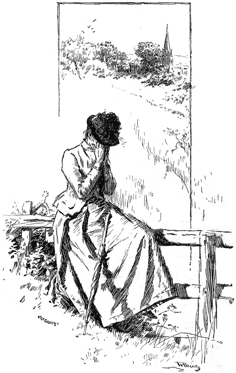 He waved his hand and turned along the foot-path, looking back many times to see Netta still sitting inconsolable where he had left her, on the stile that led from the combe into the Four-acre meadow. Both paths, to right and left, led back to Holmbury over the open field, but they diverged rapidly, and crossed the railway track by separate gates, and five hundred yards from each other. A turn in the path, at which Ughtred lingered long, hid Netta at last from his sight. He paused and hesitated. It was growing late, though an hour of summer twilight still remained. He couldn't bear to leave Netta thus alone in the field. She wouldn't allow him to see her home, to be sure, and that being so, he was too much a gentleman to force himself upon her. But he was too much a man, too, to let her find her way back so late entirely by herself. Unseen himself, he must still watch over her. Against her will, he must still protect her. He would go on to the railway, and there sit by the side of the line, under cover of the hedge, till Netta crossed by the other path. Then he'd walk quietly along the six-foot way to the gate she had passed through, and follow her, unperceived, at a distance along the lane, till he saw her back to Holmbury. Whether she wished it or not he could never leave her.