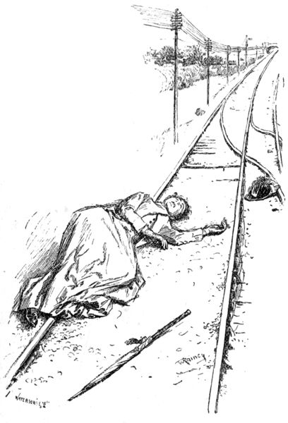 As she rushed along wildly, at the top of her speed, her little foot caught on the first rail. Before she knew what had happened, she had fallen with her body right across the line. Faint and terrified already, with a thousand vague alarms, the sudden shock stunned and disabled her. Mad bull or drunken man, they might do as they liked now. She was bruised and shaken. She had no thought left to rise or recover herself. Her eyes closed heavily. She lost consciousness at once. It was a terrible position. She had fainted on the line, with the force of the situation.
