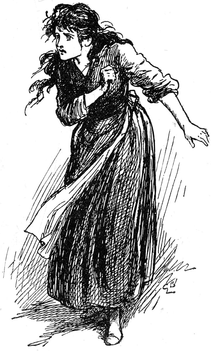Turning over which thoughts with a whirling brain, for she was but a girl after all, she reached the little swing-gate that led to the railway, and pushed it aside with vague numbed hands, and stood gazing vacantly at the long curved line in front of her.