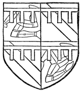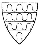 [9] Armorial bearings of Isham: Gules, a fesse wavy, and in chief three piles in point also wavy, the points meeting in fesse argent.
