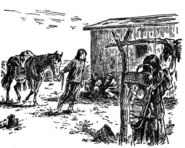 He turned toward his gray hunting horse, which was rein-haltered near by and which had a buck strapped behind the saddle. Without a word or a backward glance the tall chief mounted and rode at a walk in the direction of his wickiup.