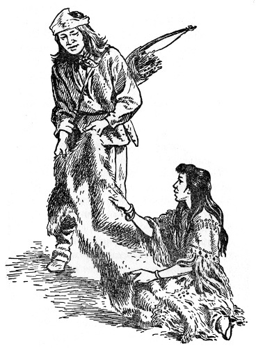 A girl had come from the wickiup. Geronimo was so interested in the horse that he did not even know she was near until she spoke. Her name was Alope, and she was Delgadito's niece. Geronimo thought she was so lovely that the most dazzling maidens of the Mimbreno or any other tribe were drab beside her. When grown, such a girl would be too good for any warrior. Only a chief would be worthy to have her as his wife.