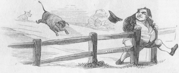 "But I wouldn't," replied my brother. "Look here: Lincolnshire, the county that I've been staying in for these, I don't know how many years—and a very tall county, too, tall and fat—did I take any jaw from her? Ask the sheriff. And Leicestershire, where I've generally spent my holidays, did I take jaw from her? Tell me that. Neither, again, did Louth ever dream of giving me any of her jaw; then why should I stand it from Lancashire?"