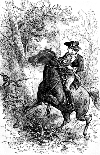 Without stopping to make inquiries or to guess who could have owned the estray steed, the young patriot slipped forward, caught the bridle before the animal had time to scent danger, and vaulting lightly into the saddle, turned the head of the horse toward Wyoming, and striking his heels against his ribs, quickly urged him to a dead run.