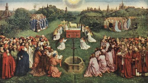 The centre-piece of the Ghent Polyptych, in the Cathedral of that town. The panel was completed in or before 1426. See page 28.