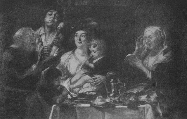“For my part,” remarked the fourth member of the party, who had been strangely silent during all this discussion, “while I like to learn a little about the history of the old towns I visit, and see the fine things—whether paintings, or town-halls, or lace or tapestry—for which they are famous, what I like the best is to study the people themselves. I mean the live ones, not those who are dead and gone that our husbands are talking about. I love to sit on the sidewalk on pleasant evenings and have dinner and black coffee while watching the people of the town go by. It’s better than a play. And on rainy days there is always some quaint[Pg 7] old-fashioned inn or café where the whole scene looks like a painting by Jordaens or Teniers. The beamed ceiling and the pictures on the walls are grimy with the smoke and steam of countless dinners, the buxom landlady sits in state behind an array of bottles of all sizes and colours and labelled at all prices, her equally plump daughters wait on the tables, the very guests—including ourselves—form a part of the picture. Why, it makes me want to be back there again, just to think of it!”
