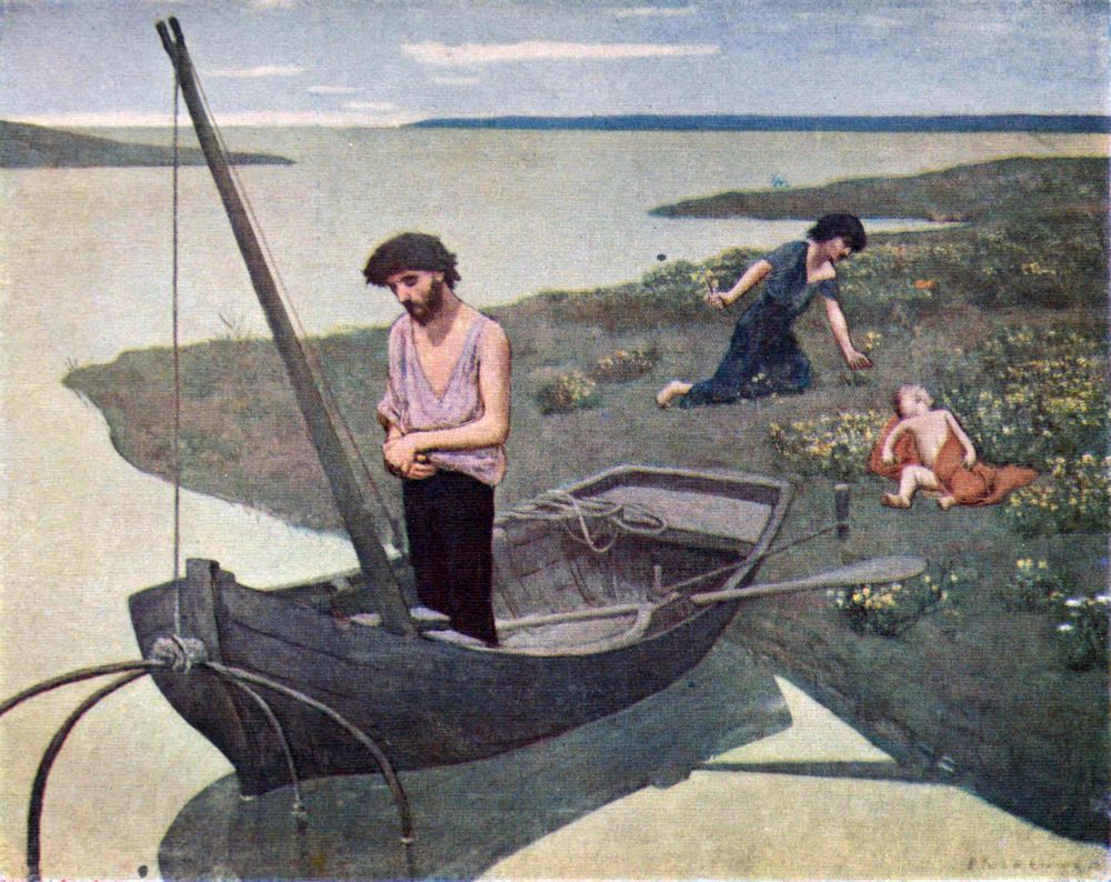 In this composition, exceptionally fine in feeling, Puvis de Chavannes shows how much importance he attached to landscape, which was the natural setting of his paintings, and which he treated with as much care as his personages themselves.