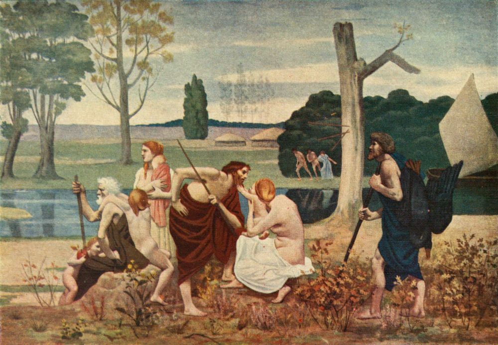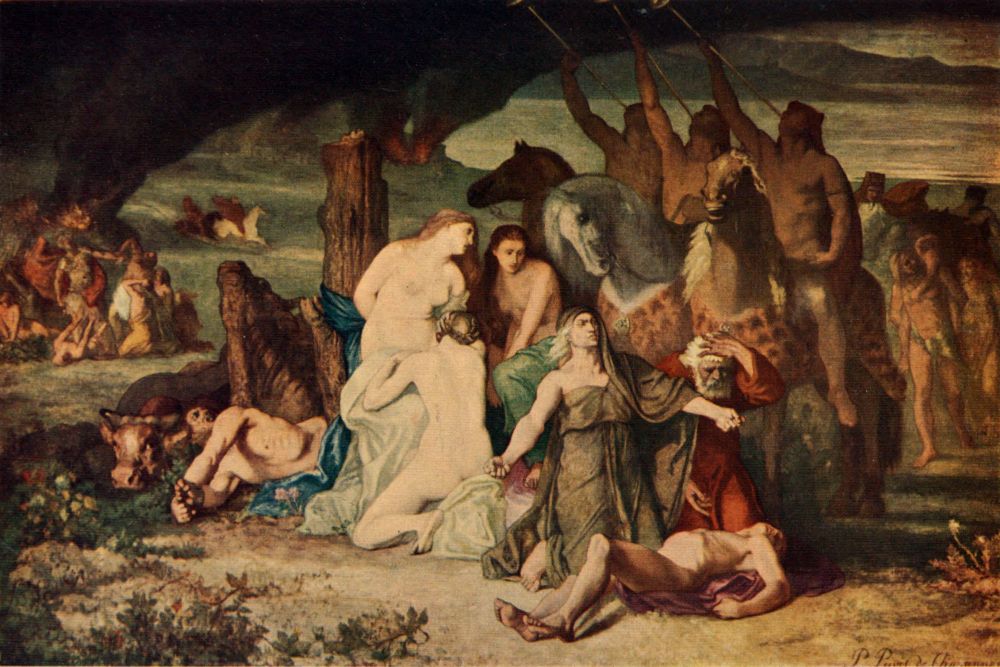 It was at this time that young Puvis entered the studio of Couture. There again his stay was brief, and we find in his work few traces of the lessons there received. Once again it was only the conventional and artificial that were held up as object lessons for that young soul enamoured of the truth, for those wide-opened eyes that saw nature precisely as she is, and not under the tinsel glitter of fantasy under which the studio of the period draped her. It followed that he learned nothing[20] from that school; nevertheless, he did not disown it. In the annual Salon Catalogue, Puvis de Chavannes continued to proclaim himself a pupil of Scheffer and of Couture.