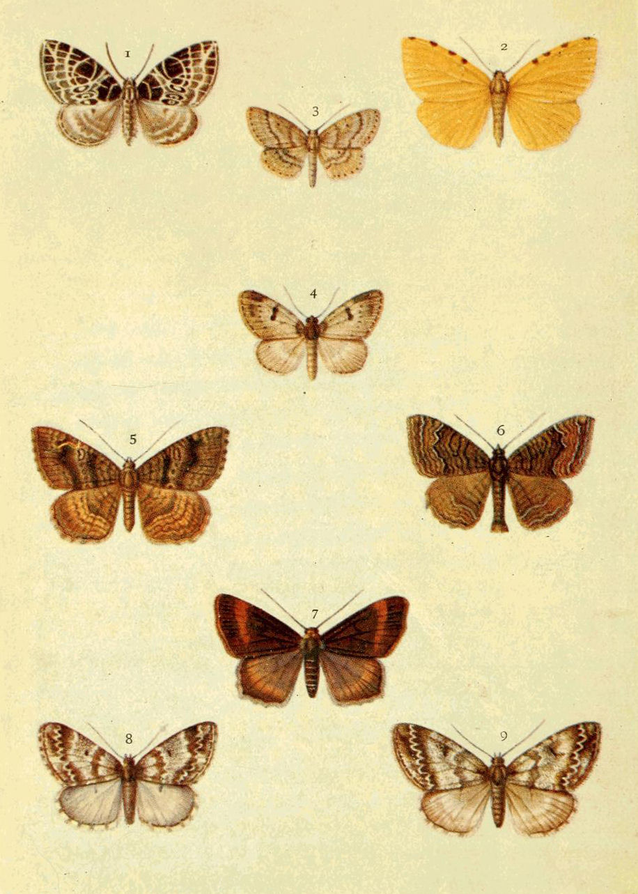 To have comprised in this scheme the large contingent of our moths known as "Micro-Lepidoptera" would have reduced further the space available for those species which experience shows appeal to the majority of nature students in a way that the minuter forms may not do. Even then, only a few general remarks on each group would have been possible, with, perhaps, a portrait or two of representative species. Such a course seemed hardly likely to prove of practical utility. The "Small Fry," as they have been called, exceedingly interesting though they may be to a limited number of students, have therefore been left for separate treatment at some more convenient season.