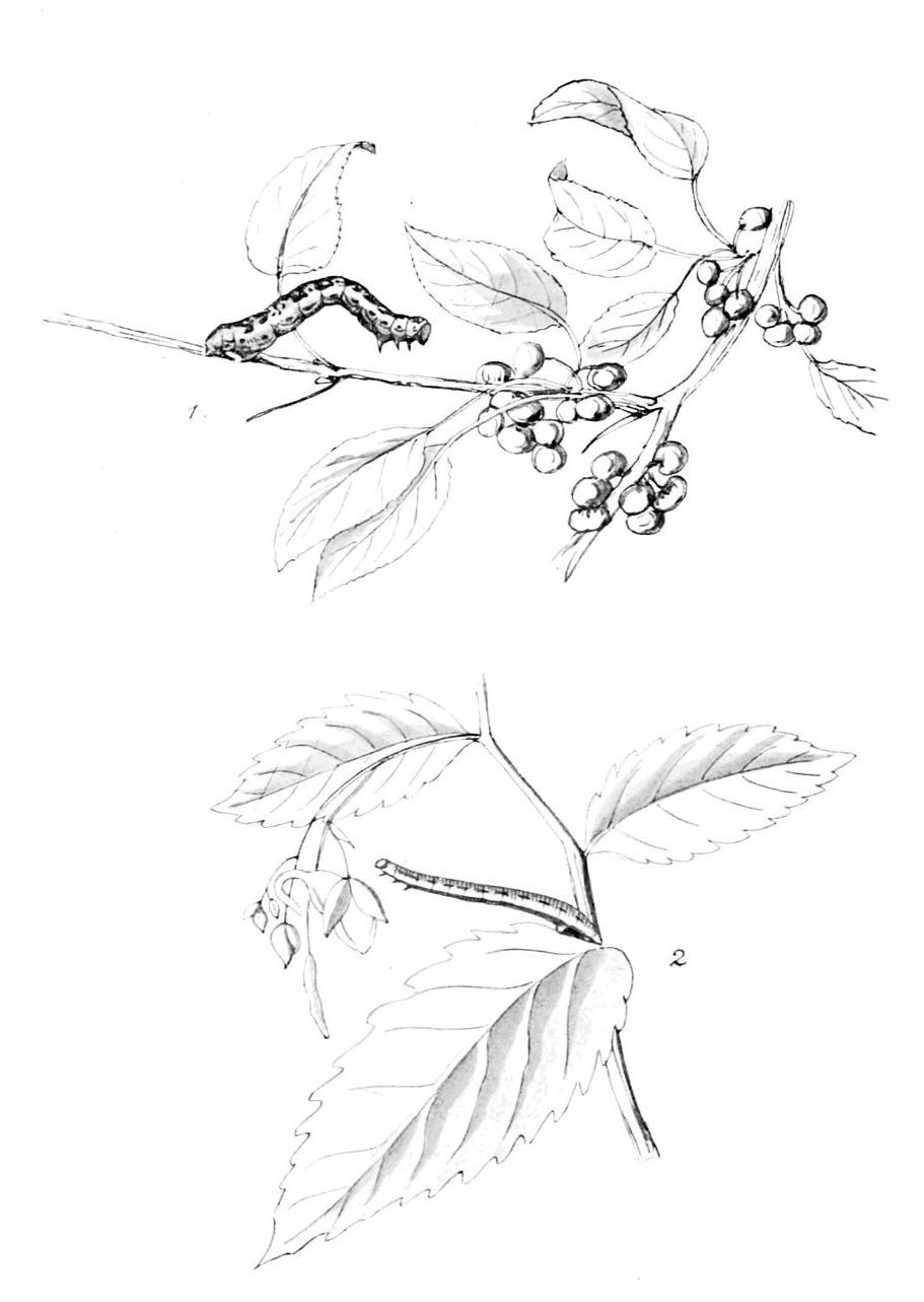 The caterpillar is brown inclining to yellowish, the head is reddish, and the plate on first ring blackish; there are three pale lines along the back, the central one more or less interrupted by dusky V-shaped marks, the others with an interrupted edging above; the stripe along the region of the blackish spiracles is yellowish grey. It lives on wych-elm and ash, eating the flowers, seeds, and leaves, but has a decided preference for the first two. It may be beaten in May and early June, sometimes in numbers, from the seeds (Plate 5, Fig. 3).