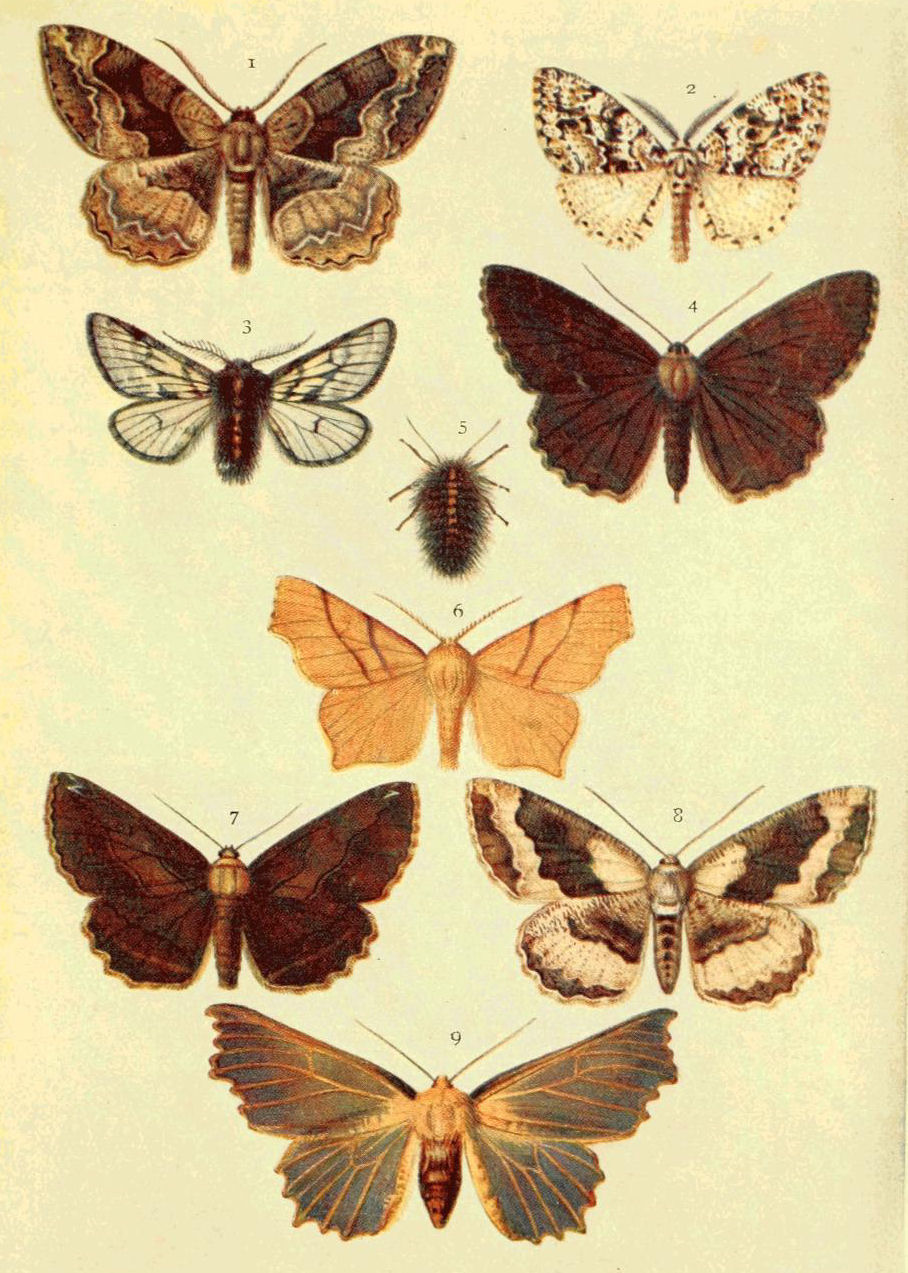 I have again to tender my sincere thanks to Mr. Robert Adkin, F.E.S., for kindly lending specimens of rare species and varieties for figuring; and also to Mr. B. Adkin, Mr. G. T. Porritt, F.E.S., and Mr. A. J. Scollick, F.E.S. I desire also to gratefully acknowledge the loan of further beautiful coloured drawings by Mr. Alfred Sich, F.E.S. These figures have been most accurately reproduced in black and white by Mr. Horace Knight, to whom I am greatly indebted for his able assistance in connection with the numerous drawings of ova, larvæ, and pupæ. In some cases the preserved skin of a caterpillar had to serve as a model, and where this occurs the fact is mentioned. A few figures of larvæ have been copied from Dr. G. Hofmann's Die Raupen der Schmetterlinge Europas, 2nd edit., by Professor Dr. Arnold Spuler. All such reproductions are duly noted in the text.