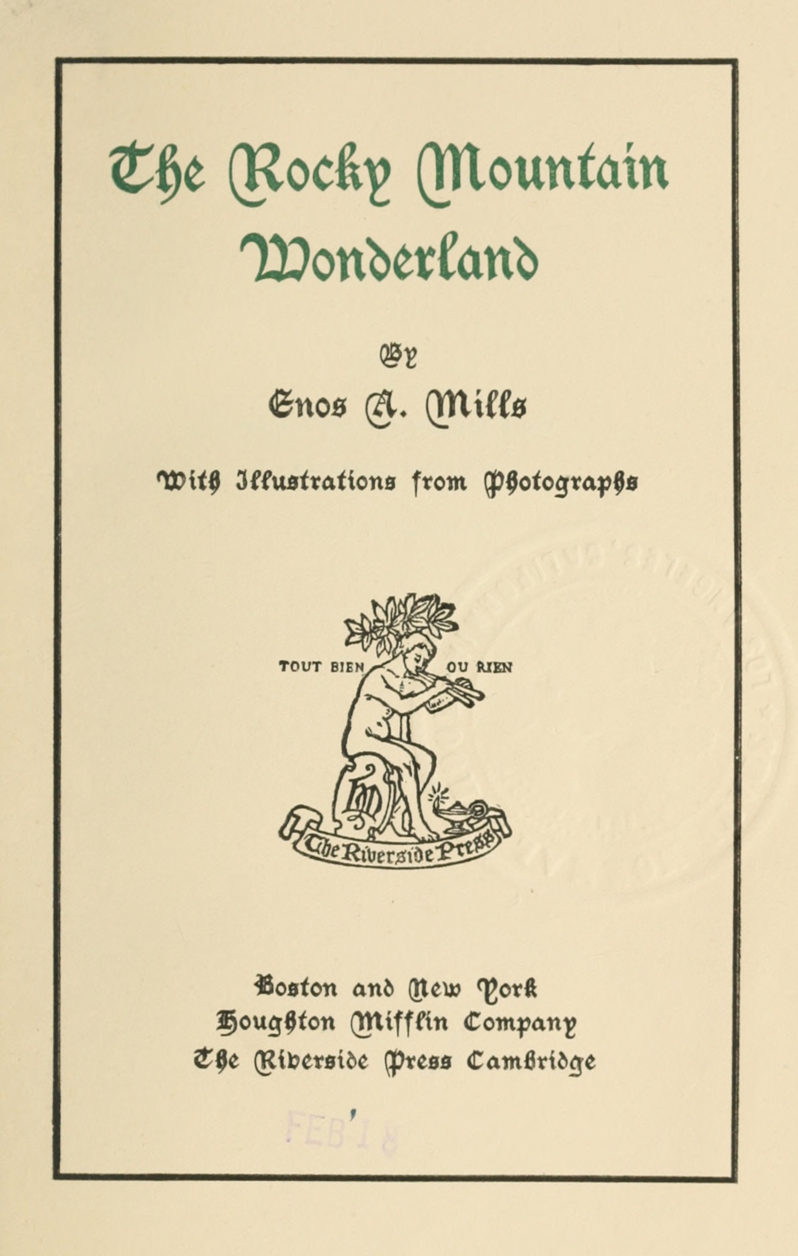 COPYRIGHT, 1915, BY ENOS A. MILLS