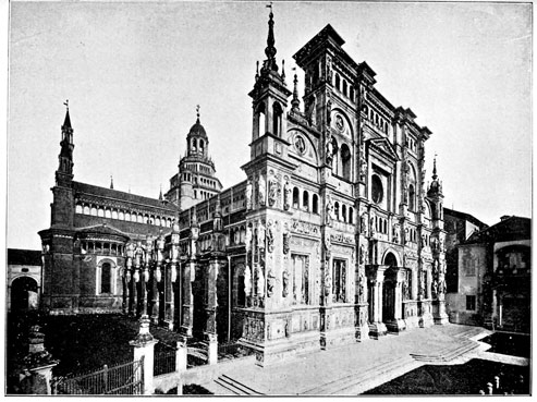 [276] Promiserunt et dederunt ad faciendum fabricandum et laborandum ... totam fazatam dicte Ecclesie ac portam, cum fenestris et aliis laboreriis necessariis pro ipsa fazata ... juxta modum et designationem ipsis fratribus dandum et dandem per dictum Monasterium.—Merzario, I Maestri Comacini, Vol. I. chap. xvii. p. 508, note 51.