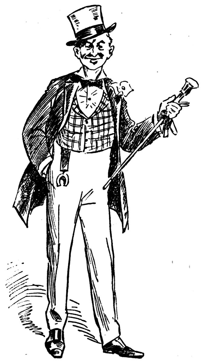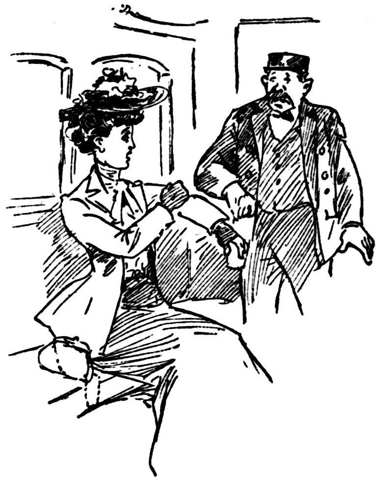 And she looked as if she would topple over on the man next to her. The conductor stooped and looked about the floor of the car. All of us passengers did the same. The pretty young thing shook[Pg 15] out her skirts vigorously. All hands lent their aid to lift up the gratings and to search the space beneath them. There was, however, no signs of the cherished emblem. About the time everybody was beginning to feel exhausted the girl suddenly exclaimed: