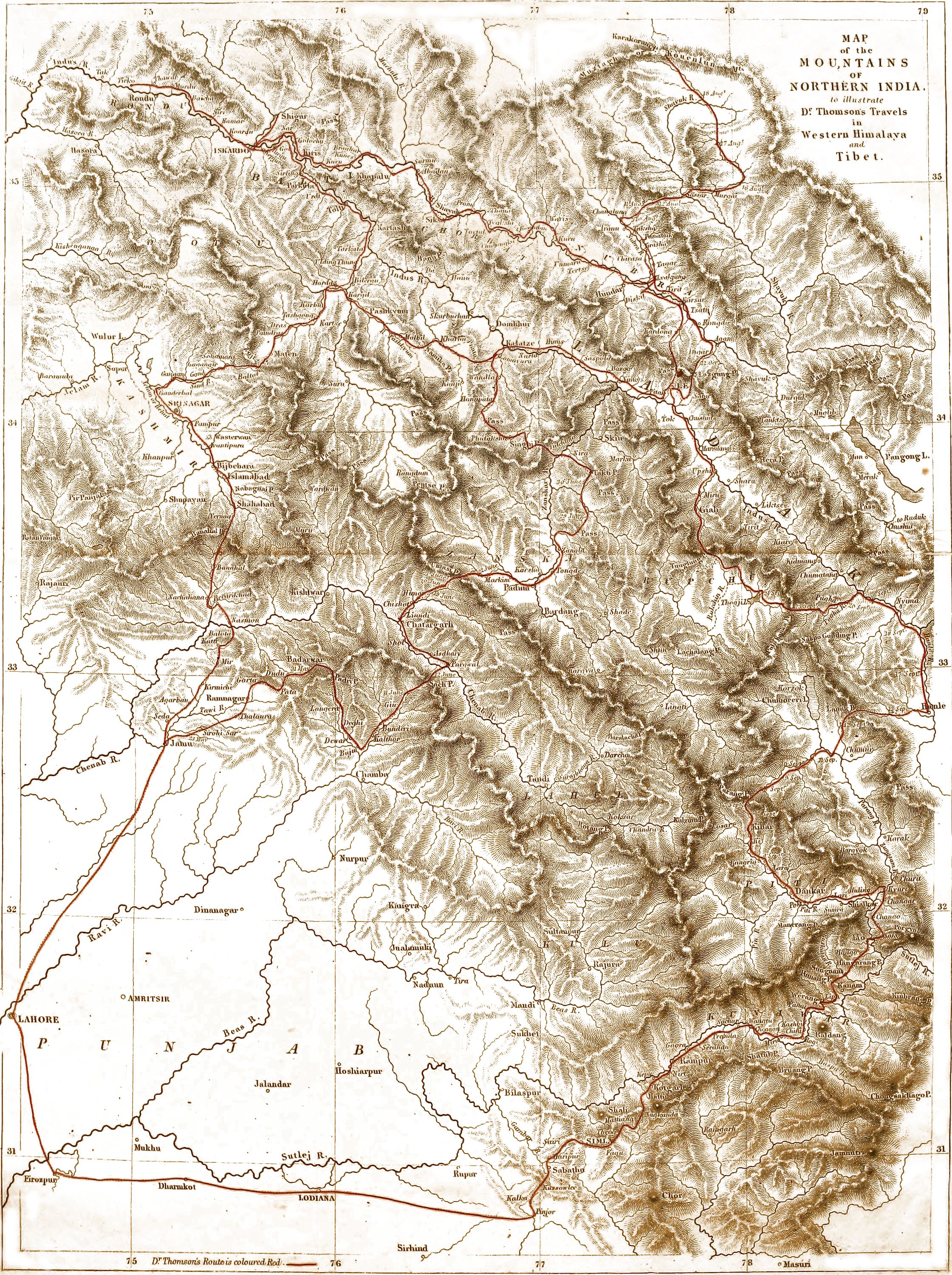 MAP of the MOUNTAINS OF NORTHERN INDIA. to illustrate Dr. Thomson's Travels in Western Himalaya and Tibet.