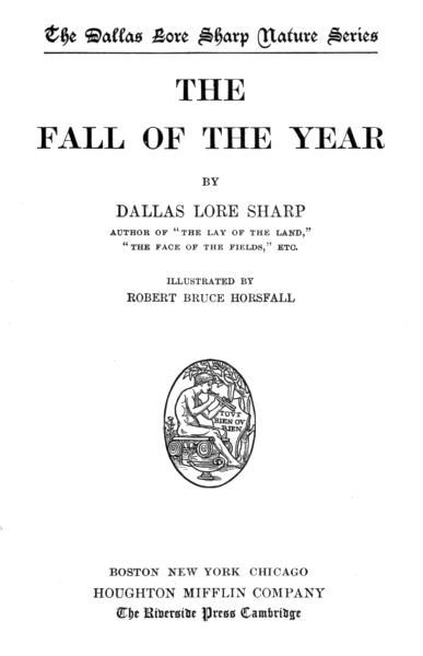 The Project Gutenberg EBook of The Fall of the Year, by Dallas Lore Sharp This eBook is for the use of anyone anywhere at no cost and with almost no restrictions whatsoever. You may copy it, give it away or re-use it under the terms of the Project Gutenberg License included with this eBook or online at www.gutenberg.org Title: The Fall of the Year Author: Dallas Lore Sharp Release Date: February 27, 2013 [EBook #42223] Language: English Character set encoding: UTF-8 *** START OF THIS PROJECT GUTENBERG EBOOK THE FALL OF THE YEAR *** Produced by Greg Bergquist, Matthew Wheaton and the Online Distributed Proofreading Team at http://www.pgdp.net (This file was produced from images generously made available by The Internet Archive/American Libraries.)