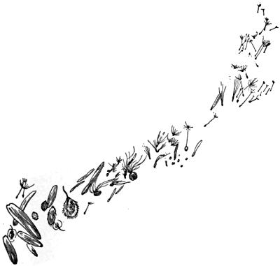 Look at the seeds of the boneset, joe-pye-weed, milkweed, and goldenrod! Seeds with wings and[Pg 6] plumes and parachutes that go floating and flying and ballooning.