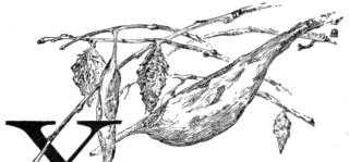 It is interesting to observe that the subject of the initial for chapter IV is witch-hazel; that for chapter VII, the cocoons of the cecropia, the promethea, and the basket worm; and that for chapter VIII, a sprig of alder, with the old fruit and a budded catkin. The subjects of the other initials require no identification.