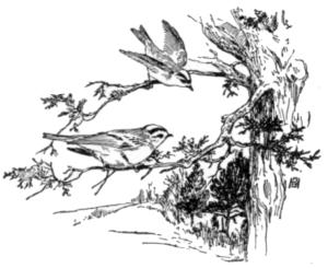 But now the hawk is not still. The shadow of my oak begins to lengthen. The hour is gone; and, wavering softly down the languid air, falls a yellow leaf from a slender birch near by. I remember, too, that on my way through the woodlot I frightened a small flock of robins from a pine; and more than a week ago the swallows were gathering upon the telegraph wires. So quickly summer passes. It was springtime but yesterday, it seems; to-day the autumn is here.