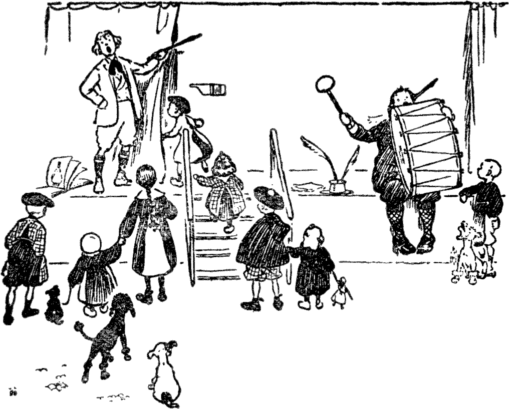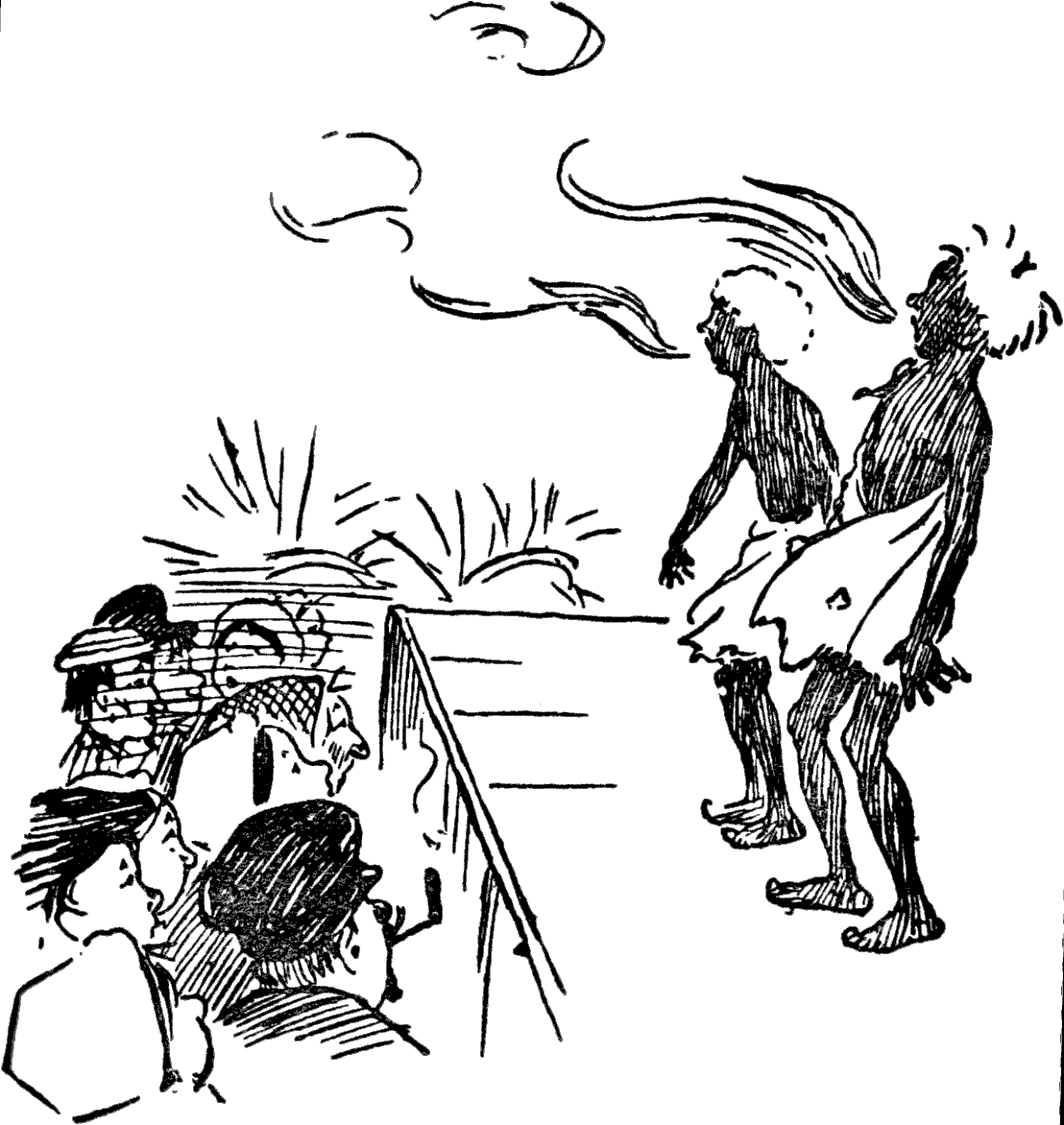 Tranen van teleurstelling sprongen hem in de oogen en zijn mondhoeken begonnen verraderlijk te trillen als aankondiging van een groote stortbui, toen op eenmaal zijn geheele gezicht, als met een tooverslag veranderde.
