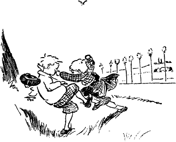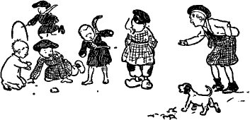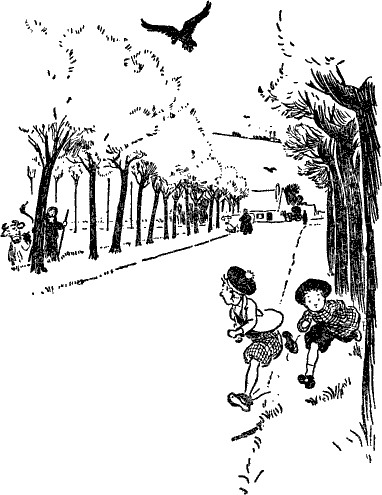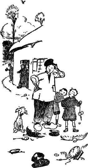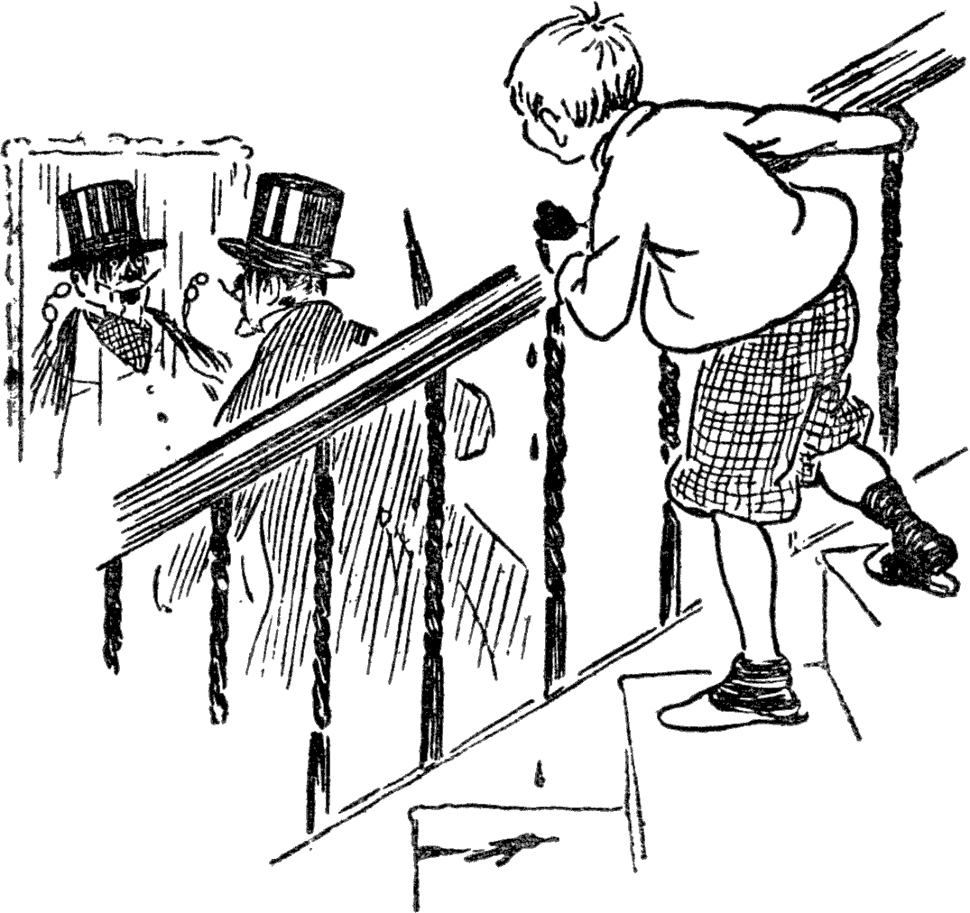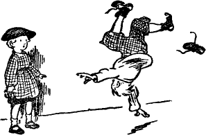 Daar viel Paul door al de takken van den boom tot den laagste, waaraan hij bleef haken met het achterste deel van zijn broek; en daar hing hij! In 't eerst sloeg hij wild met armen en beenen in de lucht maar op eenmaal zei het broekje: krak-krak en onmiddellijk hing Paul zoo stil als een muis en verroerde zich niet, want beneden hem lag een groote hoop scherven en fijn geklopte steenen en hij voelde, dat hij bij de geringste beweging zijn broek verder zou scheuren en hij op de steenen zou terecht komen.