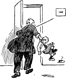 Nu barstte de storm los. Met de eene hand greep papa zijn veelbelovend zoontje bij den kraag; met de andere nam hij zijn dun buigzaam wandelstokje en wat er toen verder volgde laat ik het liefst maar aan de verbeelding over.