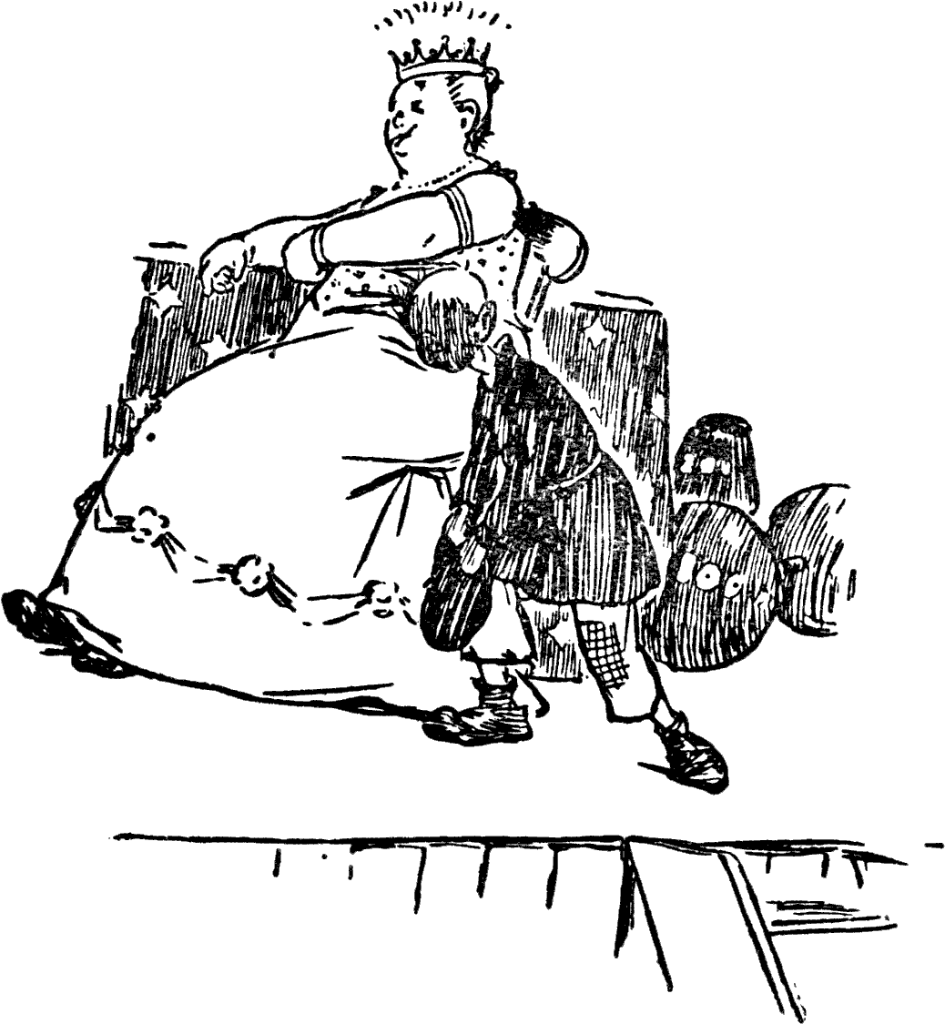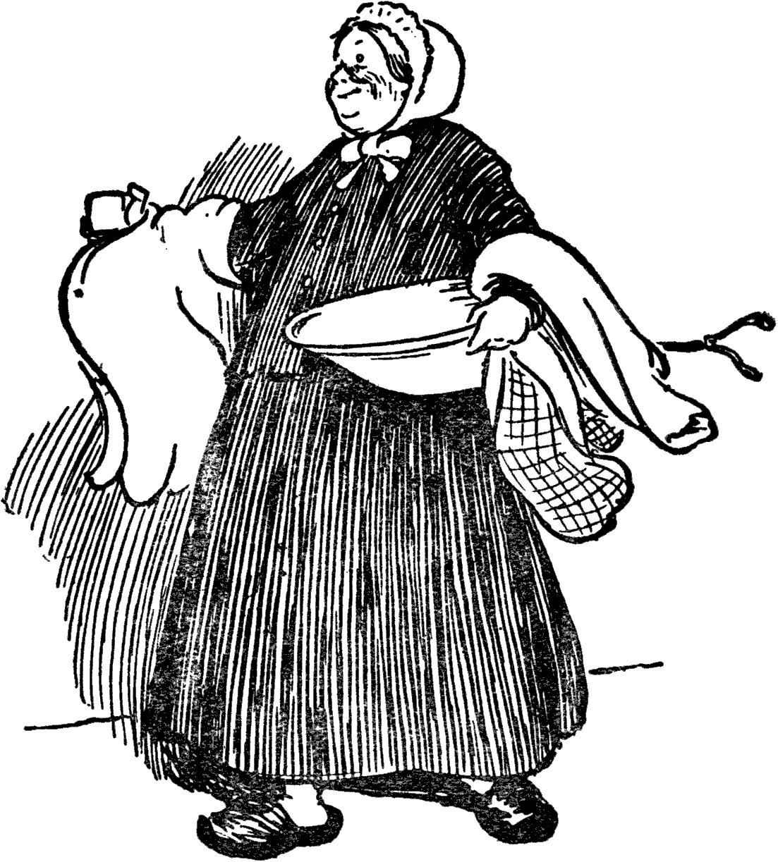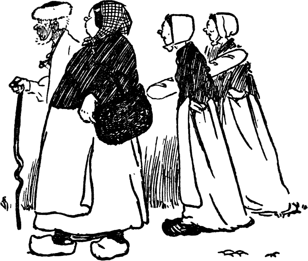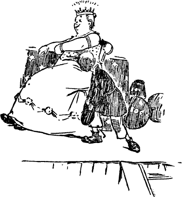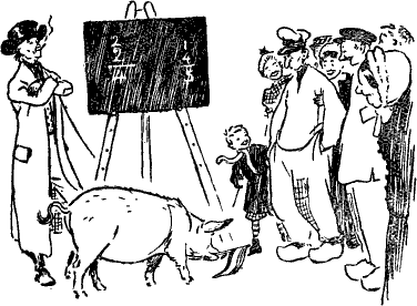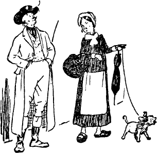 „Goedenmiddag, jongmensch,” zei hij, toen hij bemerkte dat het voorwerp een jongen was, „jij schijnt veel van appels te houden, hè? Dan lijk je mij wat; ik houd ook veel van appels, rauw of gekookt, dat komt er niet op aan, maar ik moet ze eerst gekocht en betaald hebben, hè? Kom d'r 's uit jeugdige losbol!”
