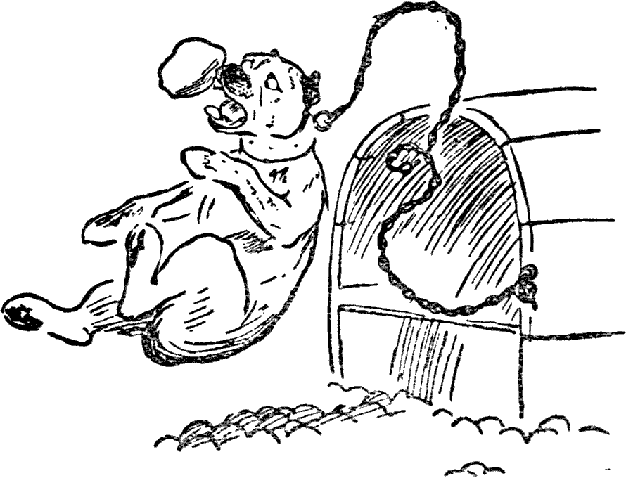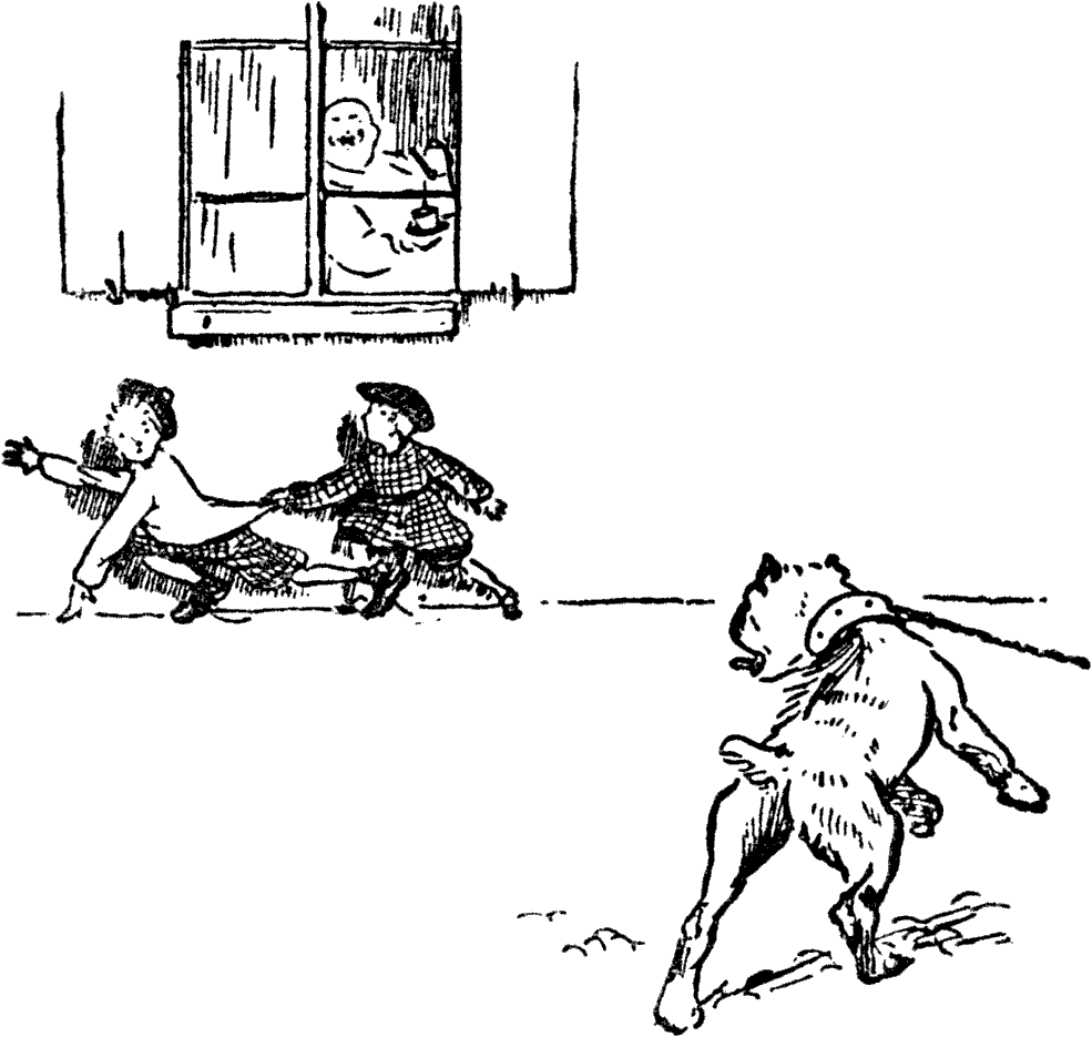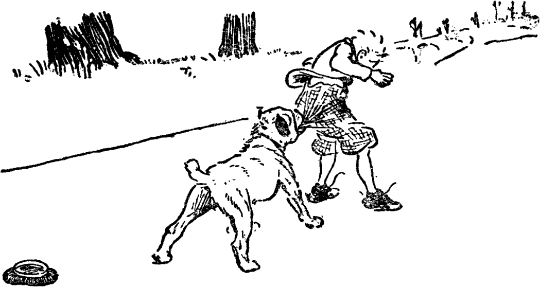 Voor hij tien pas had afgelegd had de hond hem bij het, een weinig te wijde, achterdeel van zijn broek gepakt.