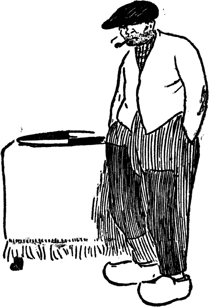 Hij stak zijn handen diep in de zakken en wandelde kalmpjes verder met groote onverschilligheid, een deuntje fluitend, alsof hij zoo onschuldig was als een pas geboren kind.