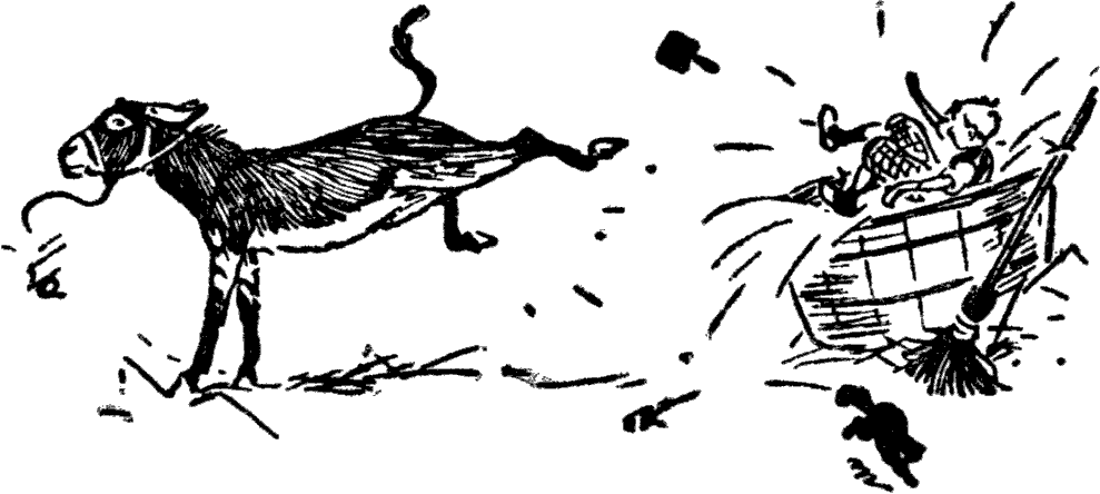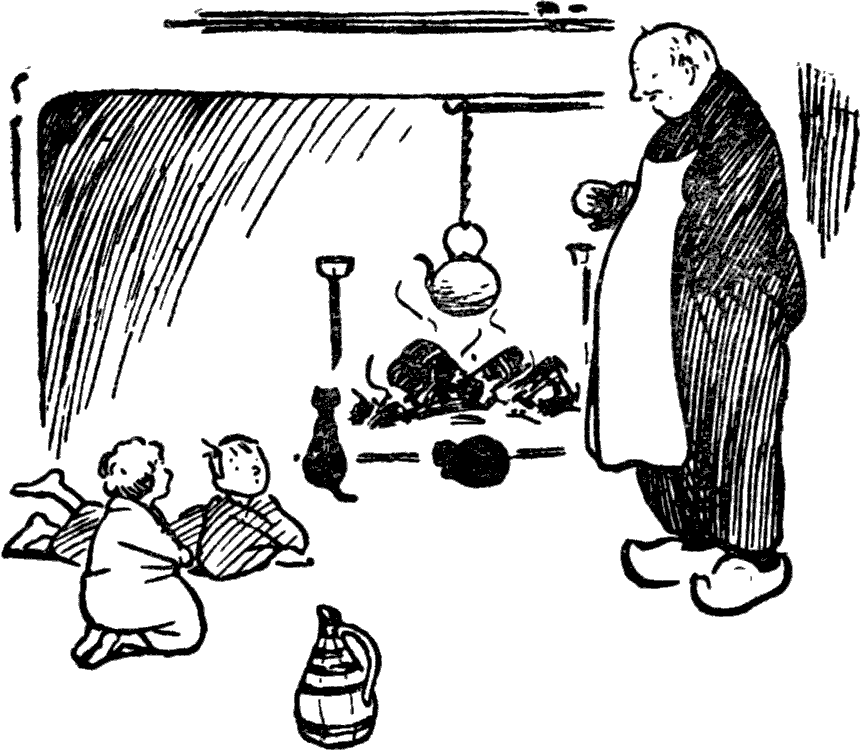„Hier!” zei hij, „ik zal je leeren leugens te verzinnen!” en meteen trok hij hem eens flink aan zijn ooren. „Nou? hoe smaakt dat? dee ik je nou pijn?”