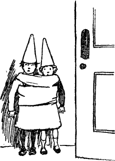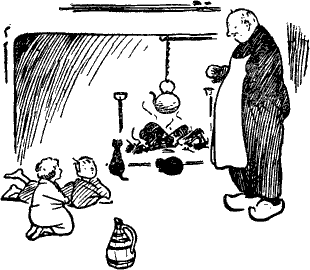 Op een Zondagmorgen toen papa en mama Steenvoorde naar de kerk waren,—de dienstboden waren den vorigen avond voor een enkele maal weggeloopen,—kwam Paul, die den geheelen morgen zoek was geweest, de tuindeur inslenteren. Zijn oog viel op de kast onder de trap. „Hé Marie,” riep hij tot zijn zusje, „wat is dit toch 'n leuke kast! Kijk er eens in.” De goedige Marie keek naar binnen; Paul gaf haar een zetje en bom! daar sloeg de deur achter haar in 't slot.